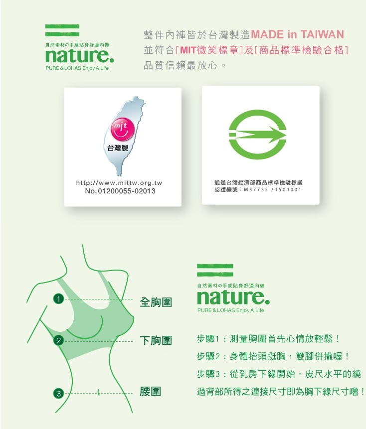 M 身高 140 - 165cm;罩杯 A - B;胸圍 : 70 - 75 (EU) / 32 - 34 (US)