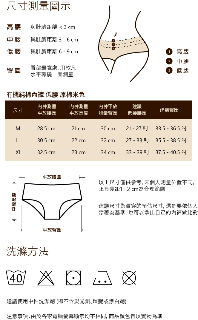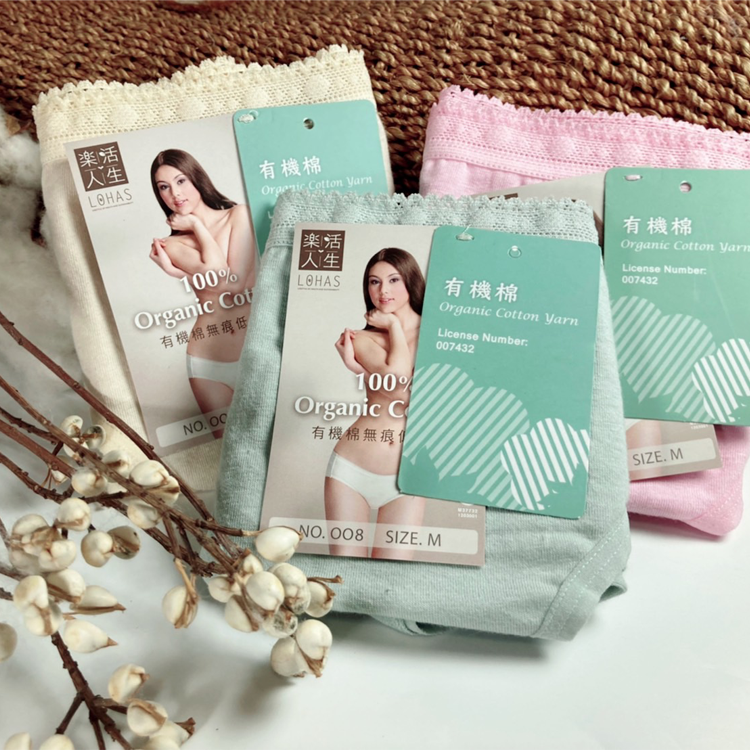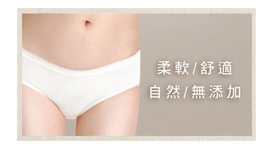 整件皆無使用化學染劑與化學加工,避免有毒物質經皮膚進入人體,給你最私密敏感部位最天然的保護。色澤以最自然布料顏色呈現,布料上若有細微小點,是最天然的棉花籽喔!