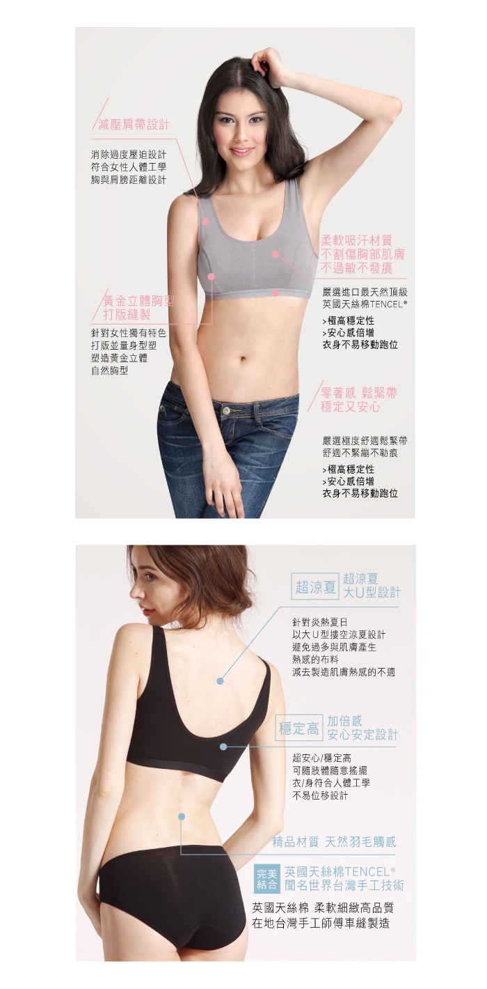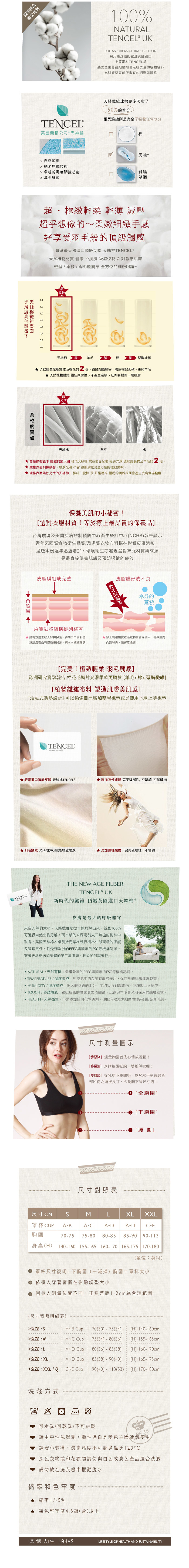 【材質】內衣:天絲棉 (Tencel Modal) 57%+棉 38%+彈性纖維 5%;內褲:天絲棉 48%+竹纖維 47%+彈性纖維 5%