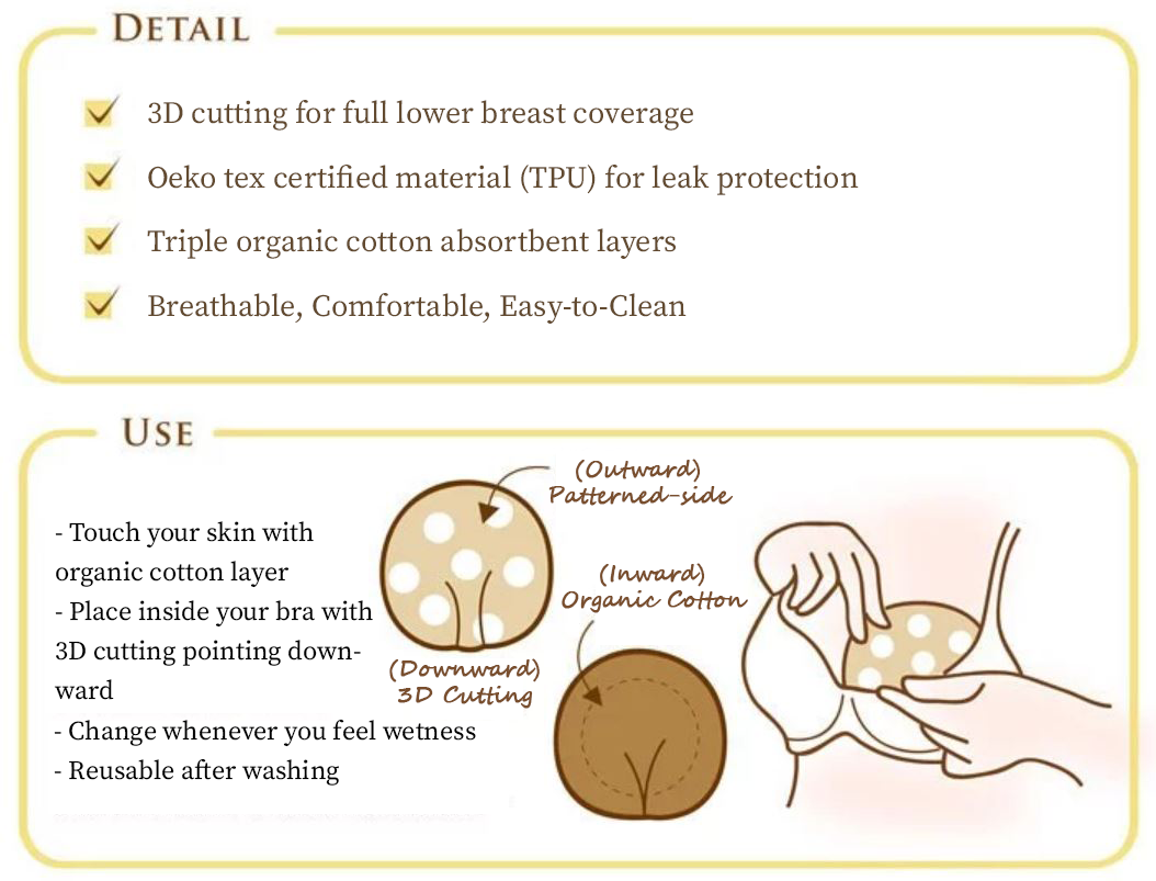 Reusable Nursing Pad [3 pairs] Organic Cotton Washable Safe for Babies Best for Breastfeeding Mum