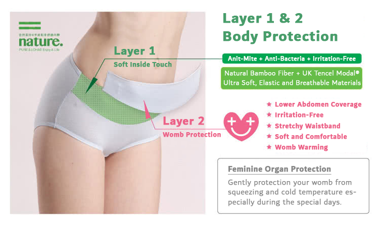 Soft stretchy waistband with double-layer fabric to cover your waist and womb, no compression but perfectly snuggish