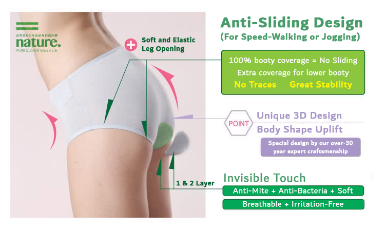 Bamboo fiber is added to further boost the breathability, allowing sweat to breathe and evaporate, rather than stick to the skin and cause odor and bacteria. Bamboo anti-bacteria nature can further boost irritation and infection resistance